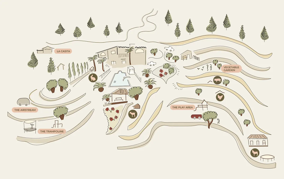 “Forget screen time; they’ll be too busy cuddling the bunnies, fetching eggs from the chickens, feeding pigs Peppa and Daisy and riding Furia and Turrón, the Shetland ponies.”
